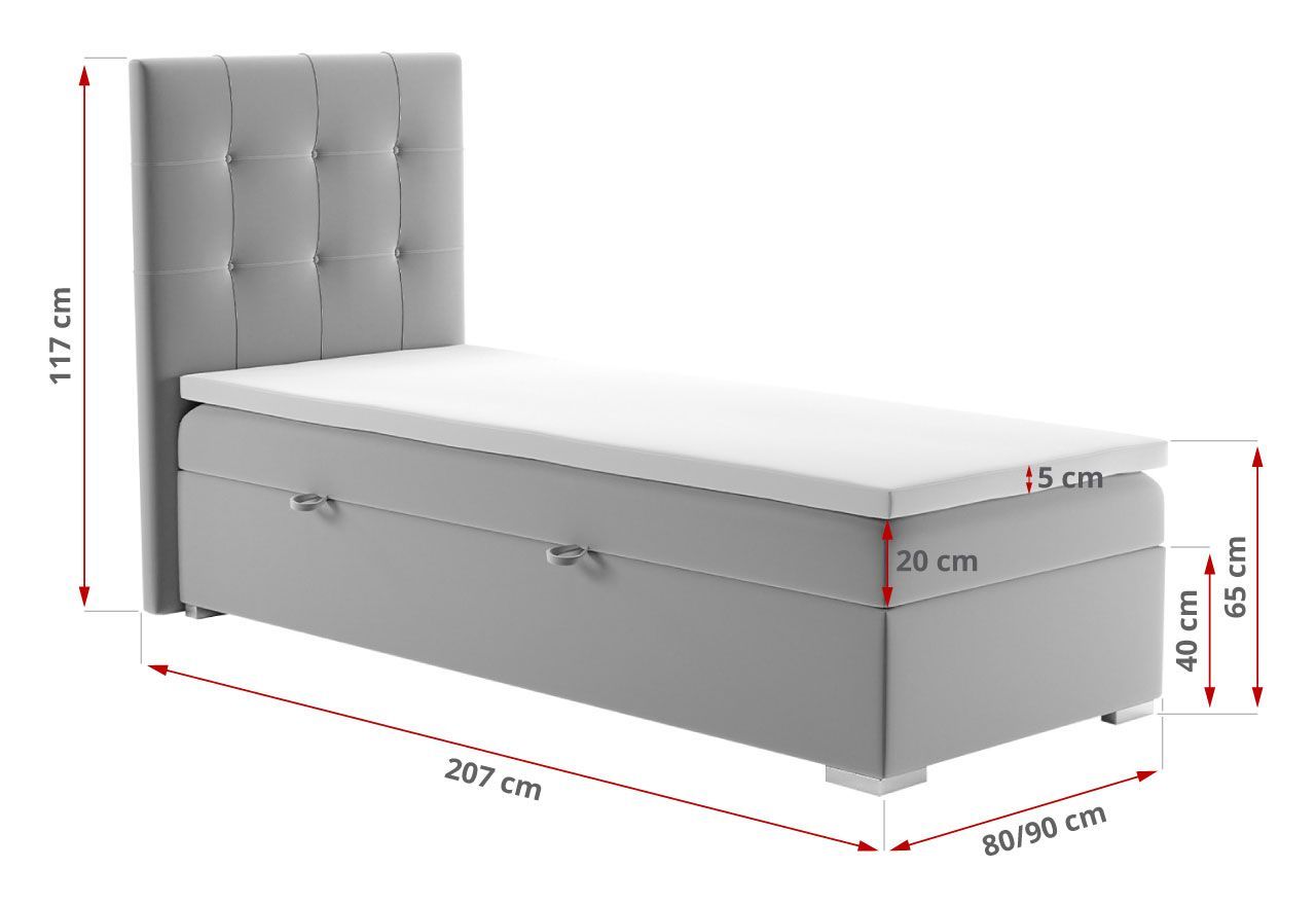 Łóżko pikowane 90 x 200 wyposażone w pojemnik na pościel lub szuflady