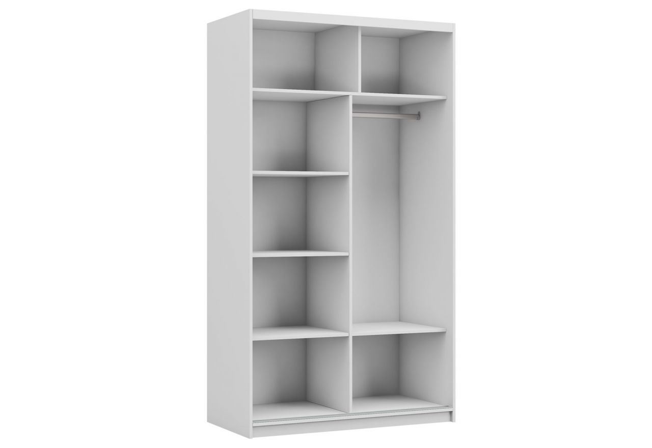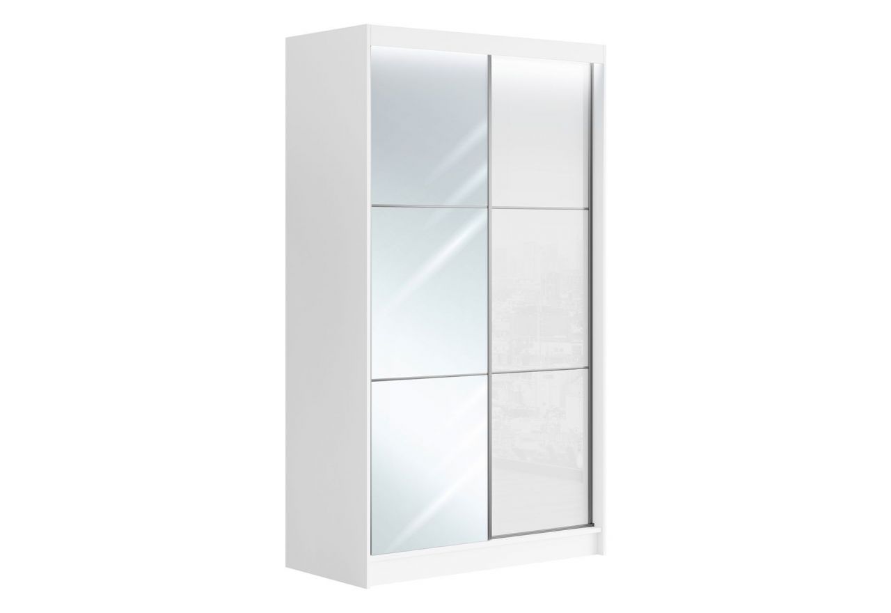 Poprzedni arrow_back_ios_newNastępny arrow_forward_iosBiała szafa przesuwna 120 cm WALENCJA z lustrem i szkłem lacobel na froncie