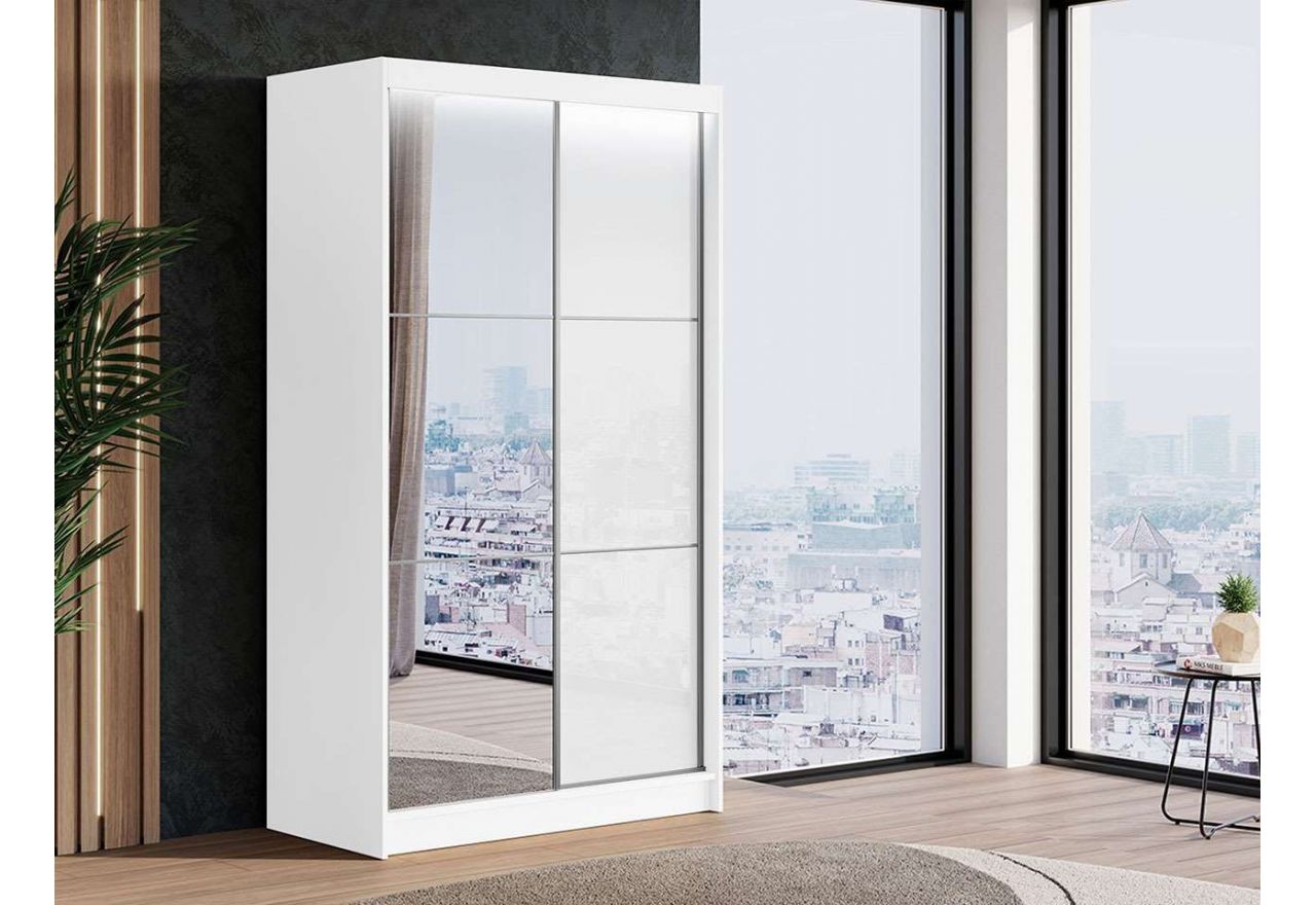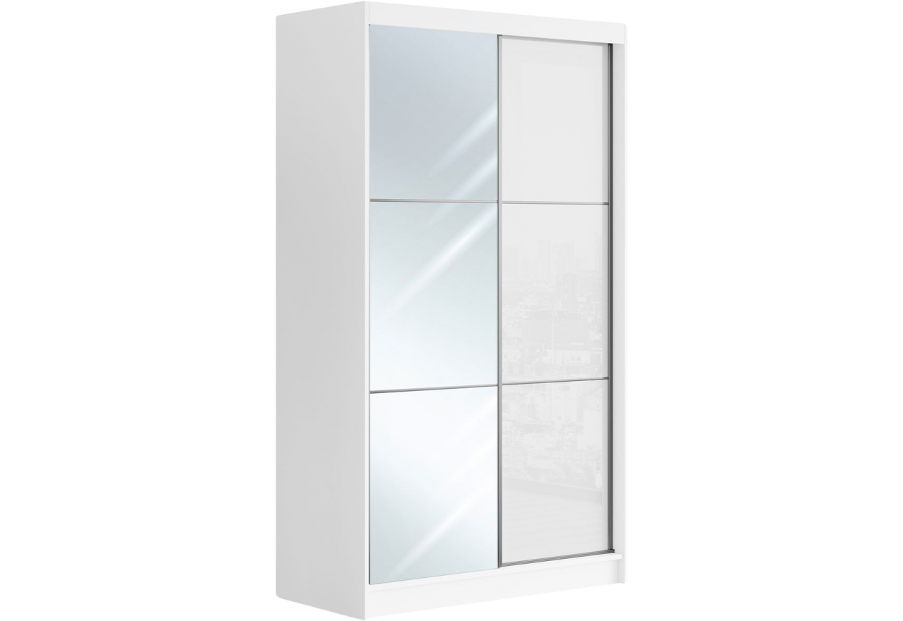 Biała szafa przesuwna 120 cm WALENCJA z lustrem i szkłem lacobel na froncie